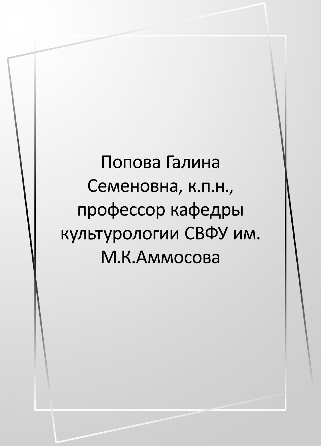 Попова Г.С. Триединство в духовной культуре этноса (на примере саха): монография.- СПб.: Астерион, 2010.- 346 с.