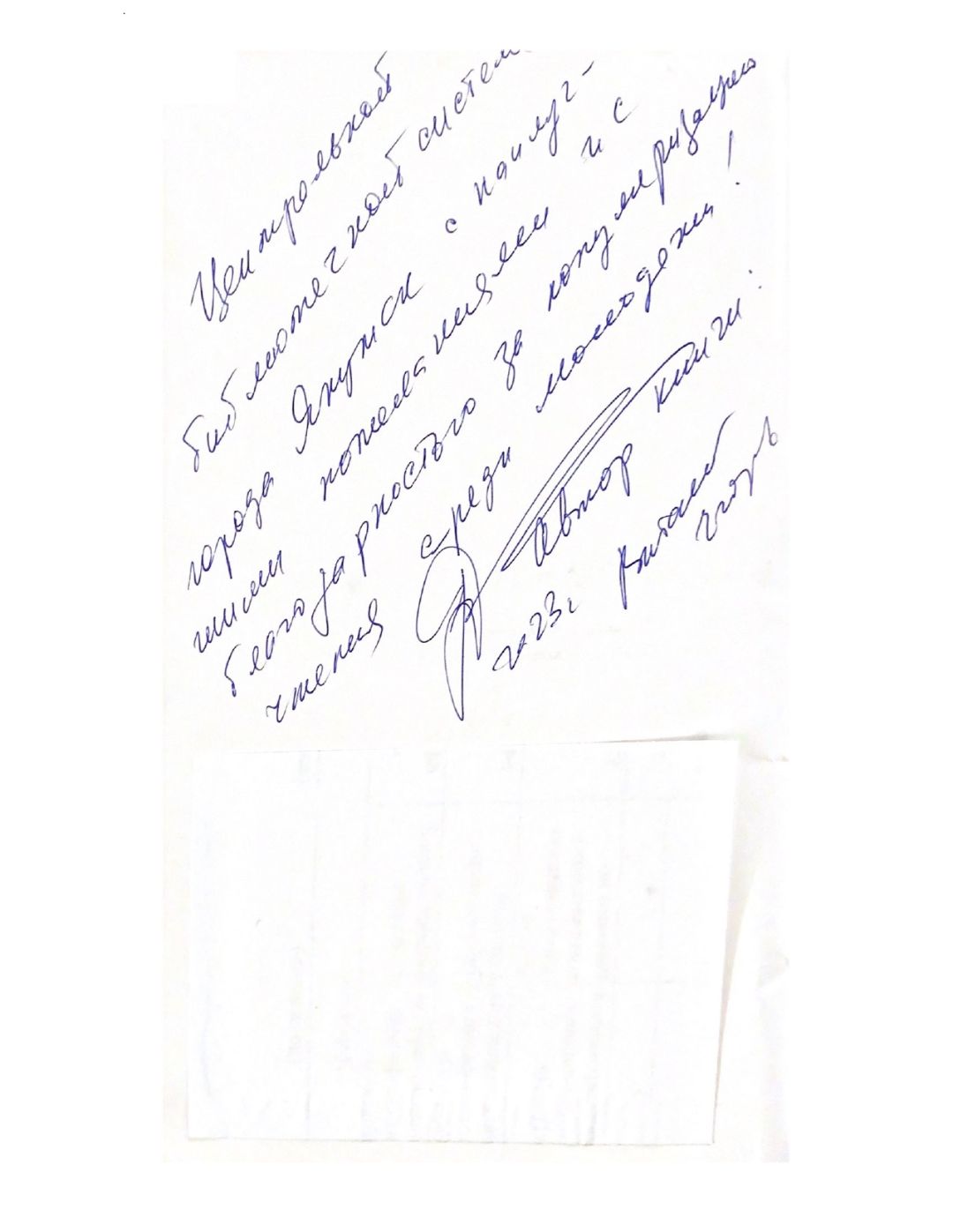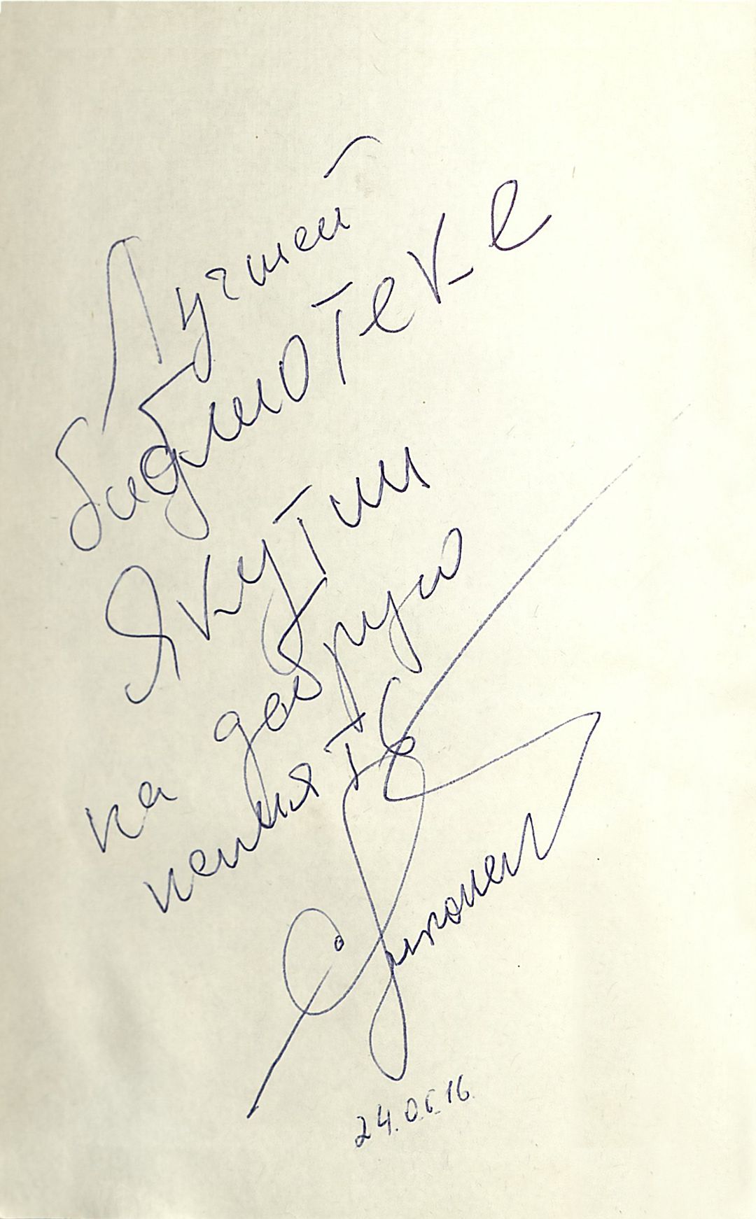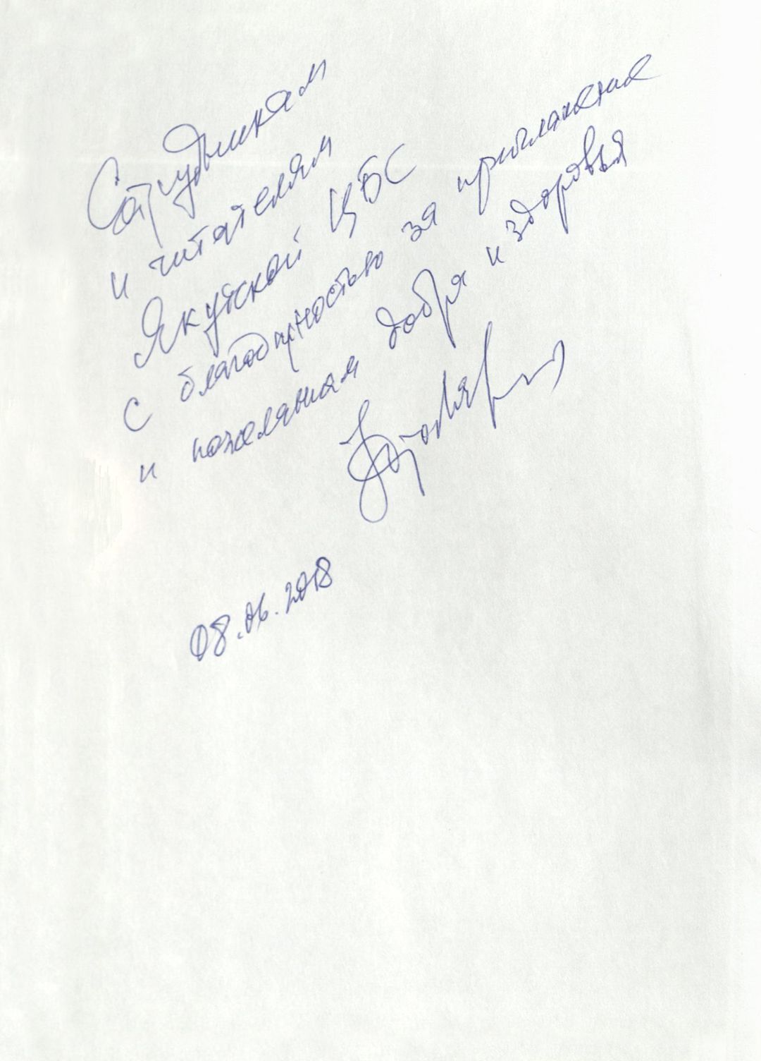 Автограф Августа Васильевича Егорова - генерального директора НИК «Айар», Заслуженного работника народного хозяйства РС (Я)