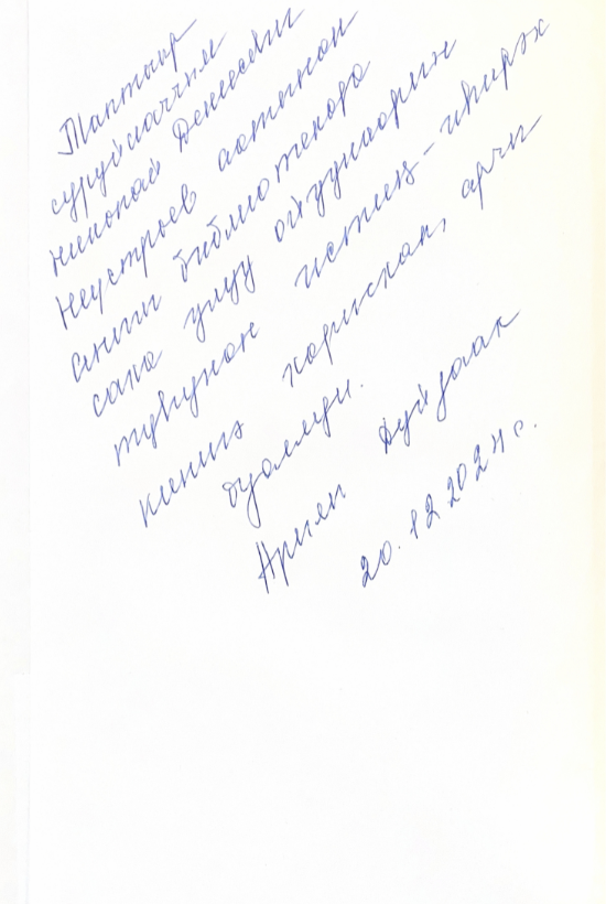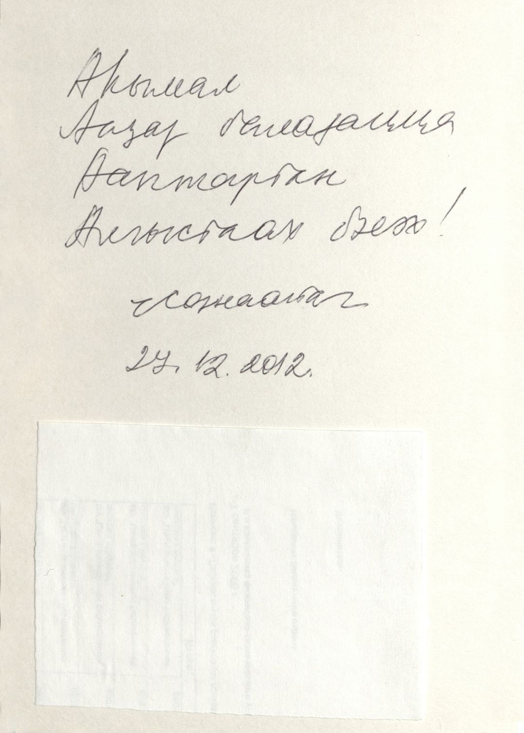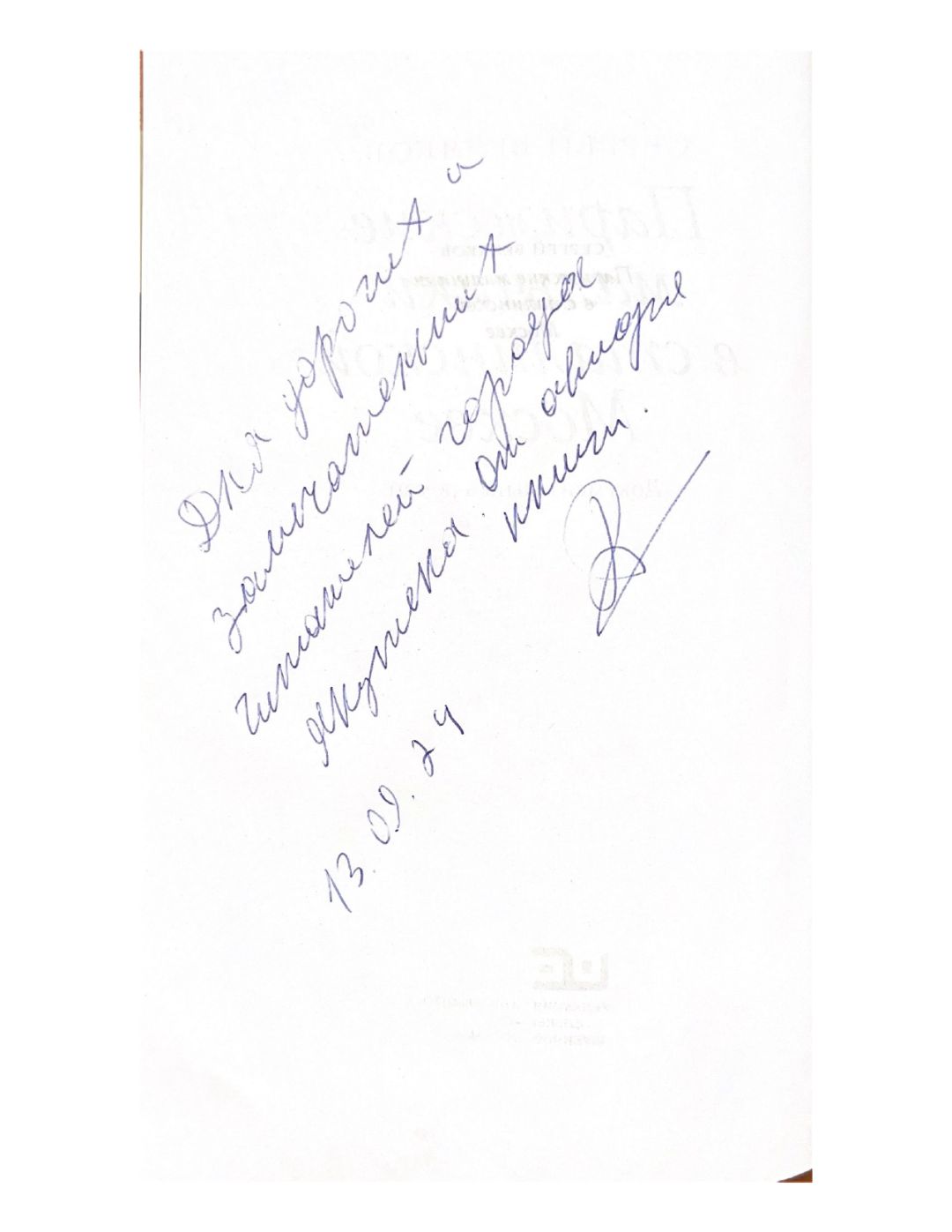 Автограф Августа Васильевича Егорова - генерального директора НИК «Айар», Заслуженного работника народного хозяйства РС (Я)