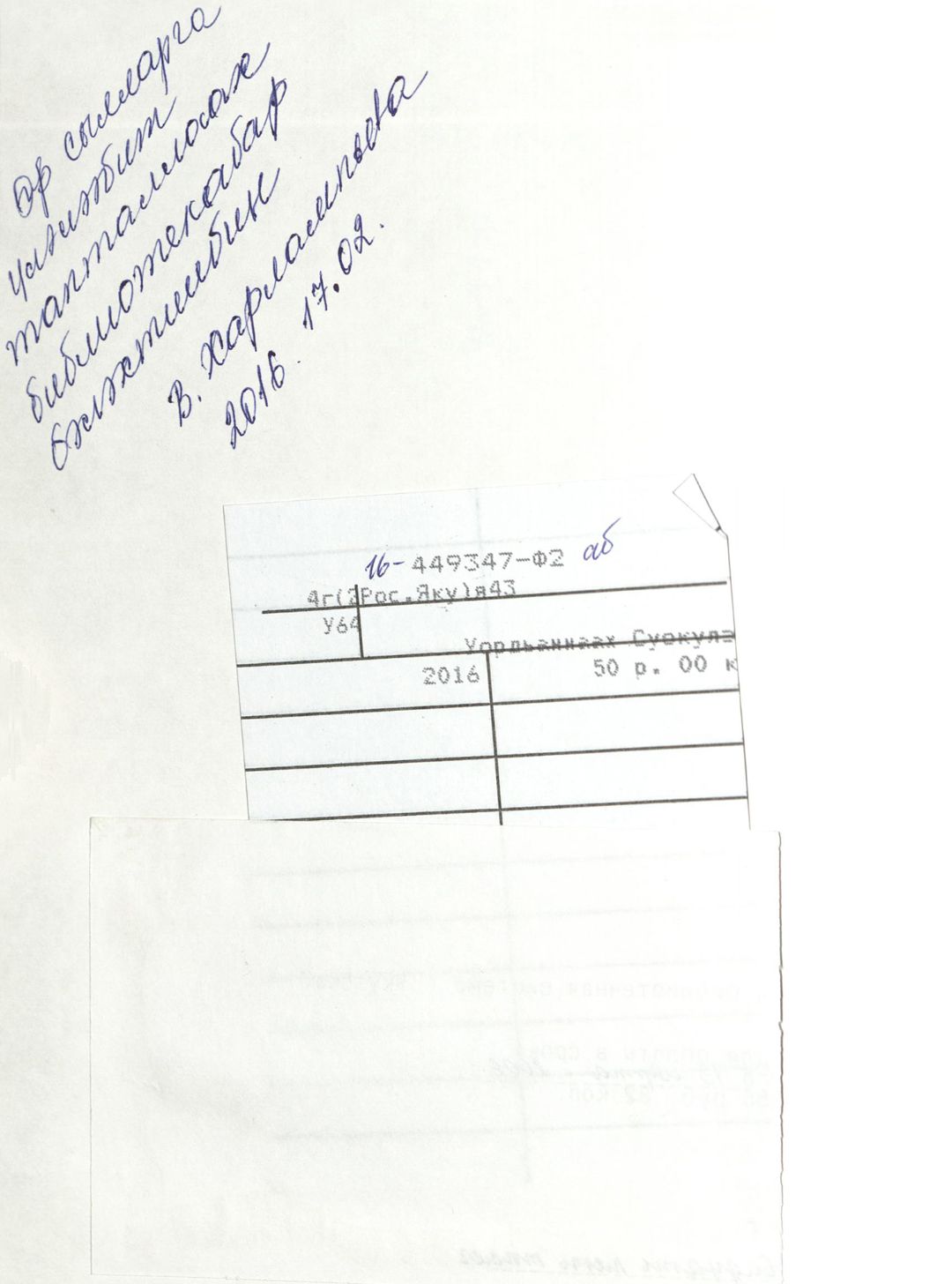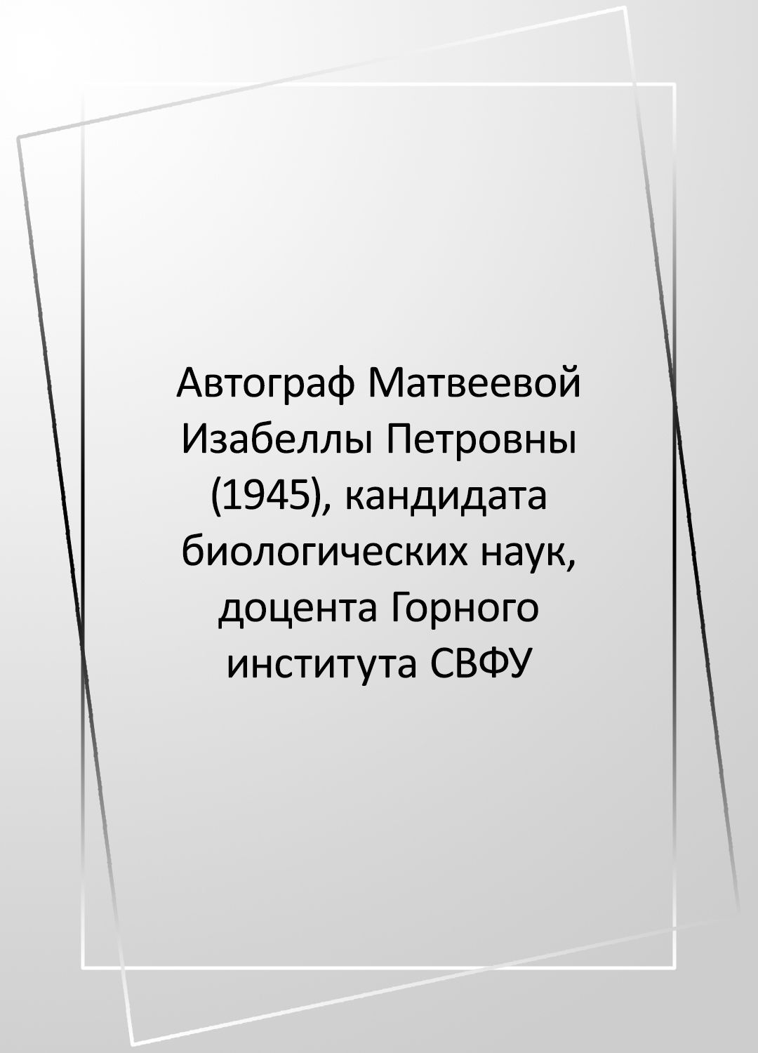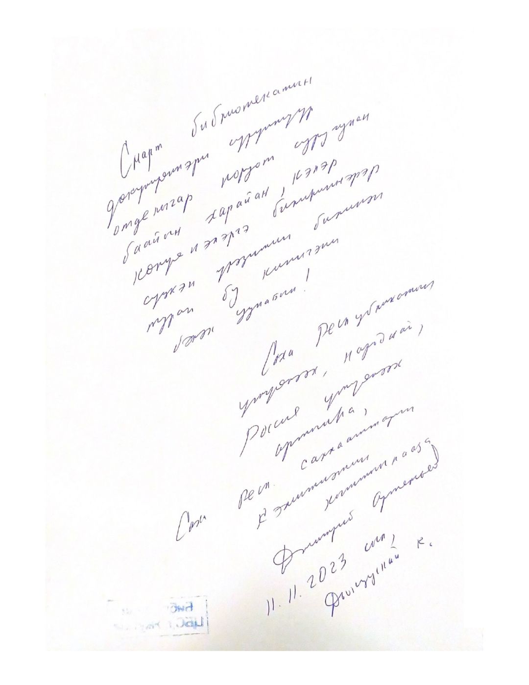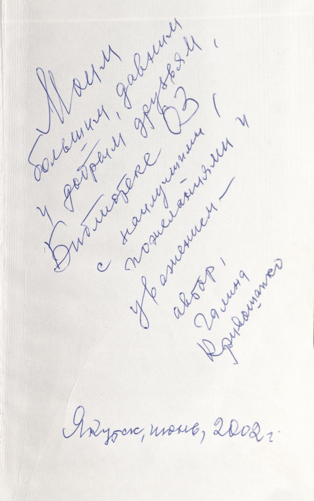 Автограф автора-сост: Харлампьевой Варвары Федоровны., в прошлом сотрудника централизованной библиотечной системы г. Якутска
