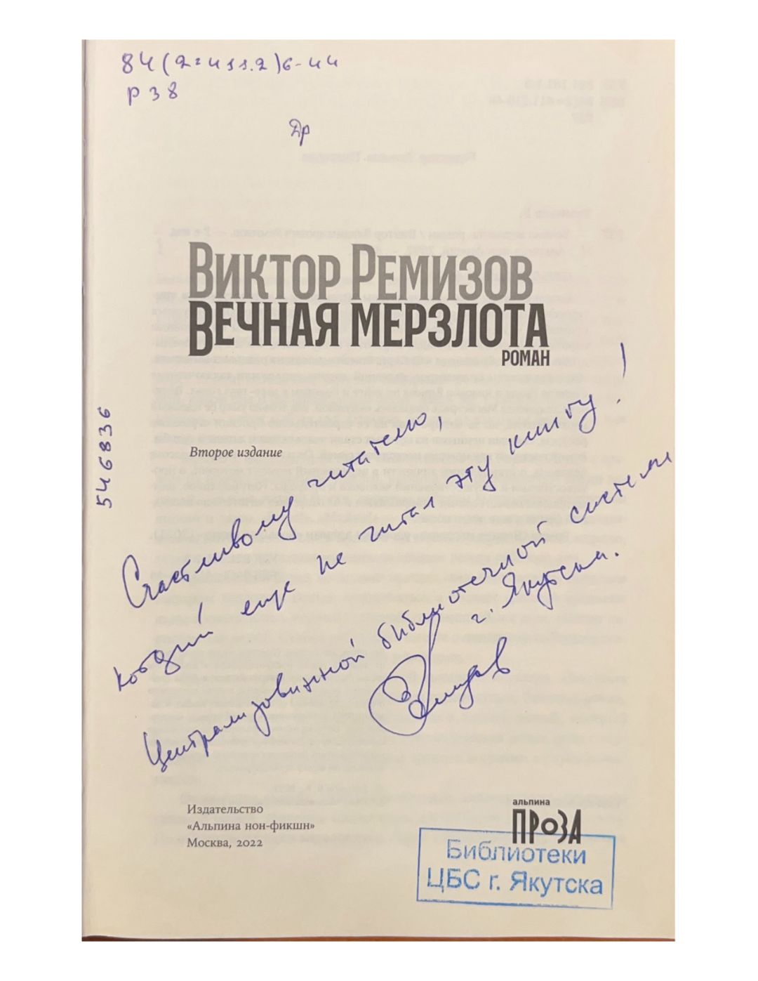 Ремизов В. В. Вечная мерзлота: роман. - Москва: - Альпина. Проза, 2022 - 868 с.