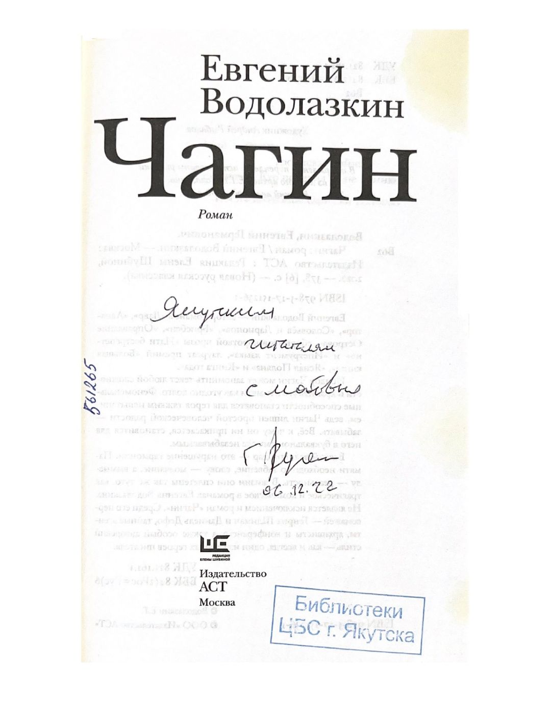 Водолазкин, Евгений Германович. Чагин : роман : [16+] / Евгений Водолазкин. -Москва : АСТ : Редакция Елены Шубиной, 2022. -378 с.