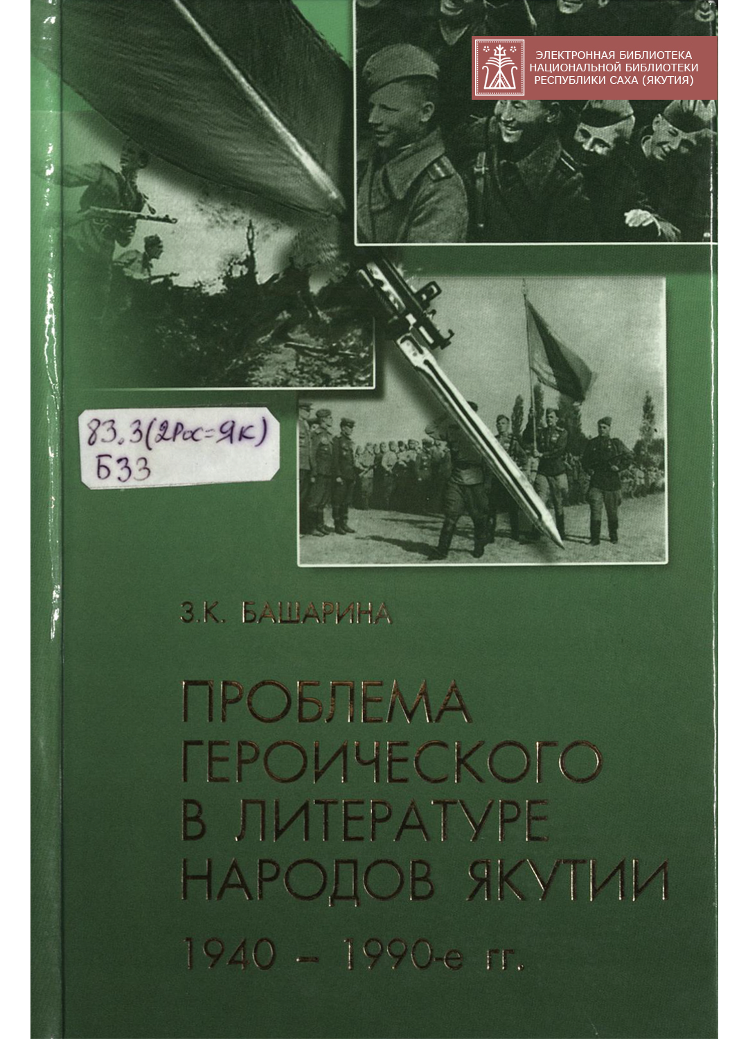 Башарина, Зоя Константиновна Проблема героического в литературе народов Якутии, 1940-1990-е гг. : [монография] / З. К. Башарина ; отв. ред. д. филол. н., проф. П. В. Сивцева ; М-во образования Рос. Федерации, Якут. гос. ун-т им. М. К. Аммосова. - Новосибирск : Наука, 2005. - 122, [2] с.